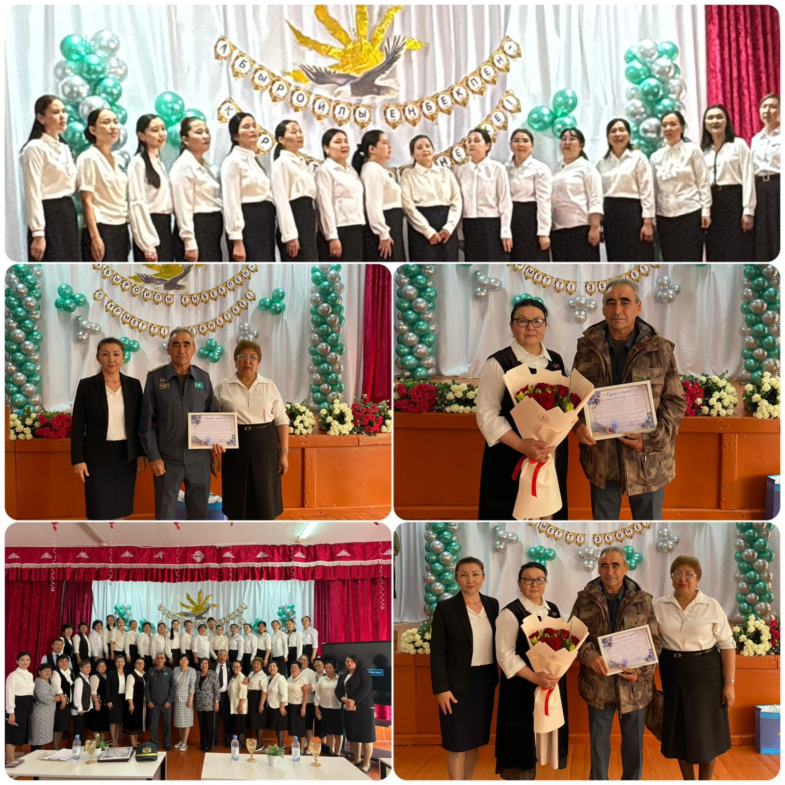 Ұлағатты ұстаздың зейнетке шығу күніне орай, мектеп ұжымы және Алға аудандық білім бөлімінің басшысы Мырзагалиева Гульназ Сартбаевна, Алға аудандық білім қызметкерлері кәсіподағы ұйымының төрағасы Еркусимова Рита Зейнуллиновна арнайы келіп, білікті ұстаздың білім саласын өркендету жолындағы қосқан үлестері мен шәкірт тәрбиелеудегі ерен еңбектері үшін алғыс айтып, құрмет көрсетті.