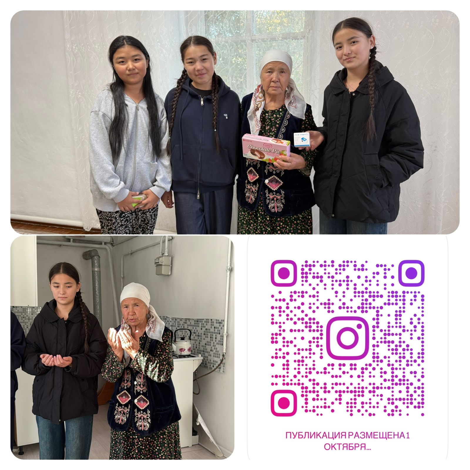 Есет батыр атындағы мектеп - бақшаның еріктілер тобы 1 қазан - Халықаралық Қарттар күніне орай «Жүрек тыныштығы» атты медициналық көмек көрсету акциясы аясында ауылымыздың қария әжесіне Пульсоксиметр сыйға тартты.