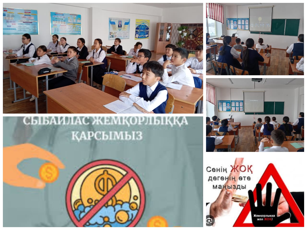 12.01.2026 ж. Есет батыр атындағы мектеп - бақшасында "Заң және тәртіп" айлығы аясында "Сыбайлас жемқорлыққа жол жоқ" тақырыптарында бірыңғай сынып сағаттары өтті.